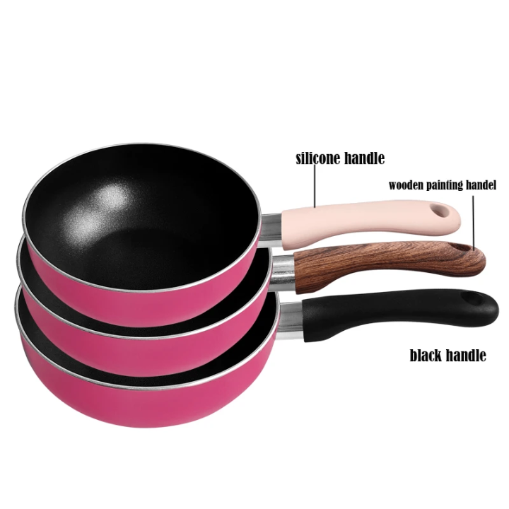 Poêle antiadhésive élégante et pratique, idéale pour cuisiner avec facilité. Dotée d'un revêtement intérieur en antiadhésif pour des repas sans effort et sans résidus. Disponible en plusieurs modèles de poignées ergonomiques : silicone, bois et plastique noir, pour un confort optimal. Parfaite pour une cuisine moderne et colorée. Convient à toutes les cuisinières.