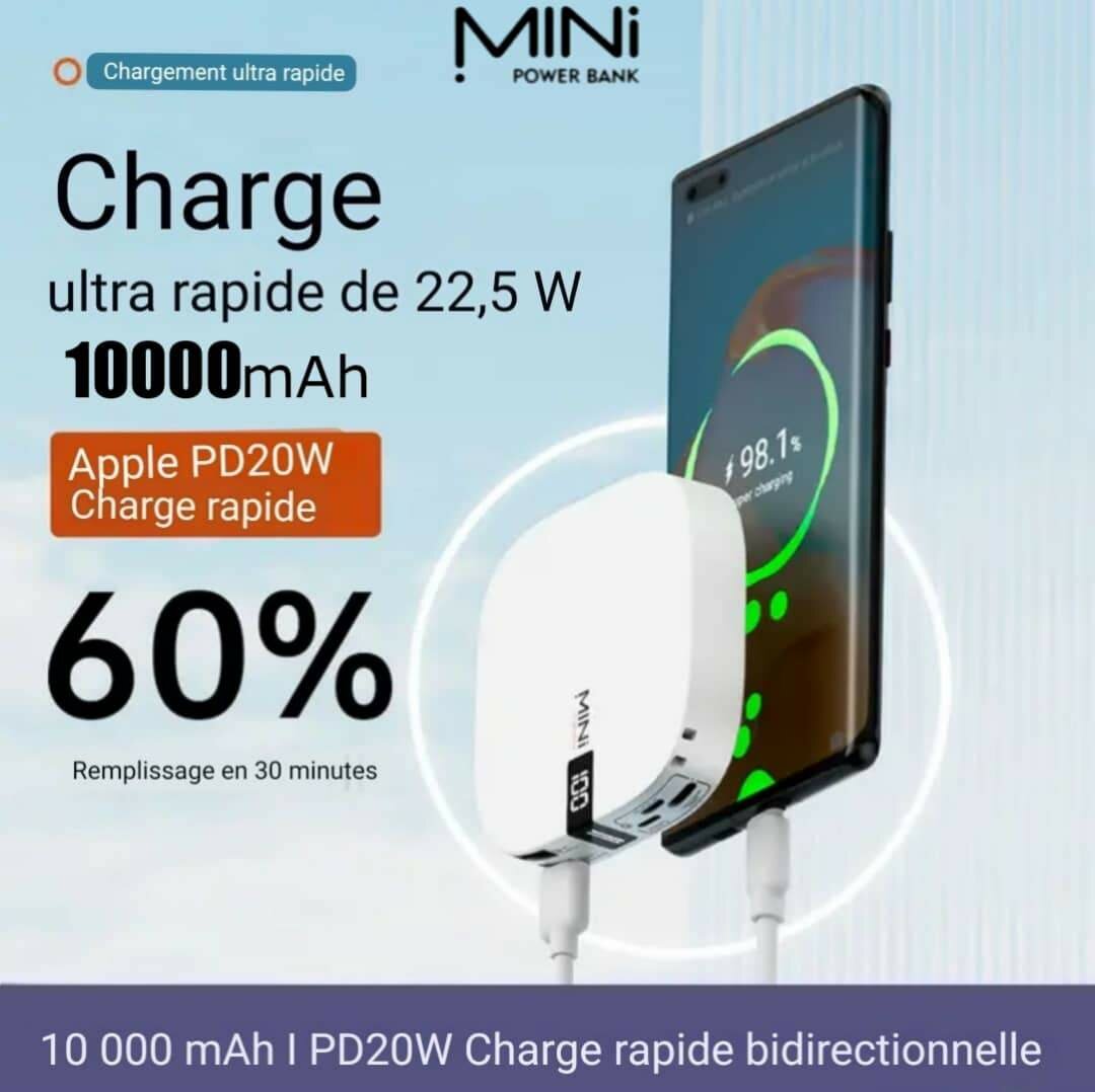 Chargez vos appareils rapidement avec notre Mini Power Bank 10000mAh. Offrant une charge ultra rapide de 22,5W et une fonctionnalité bidirectionnelle, ce chargeur portable est indispensable pour rester connecté en déplacement. Idéal pour les smartphones et autres gadgets, c'est le choix parfait pour les voyageurs modernes.