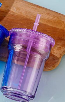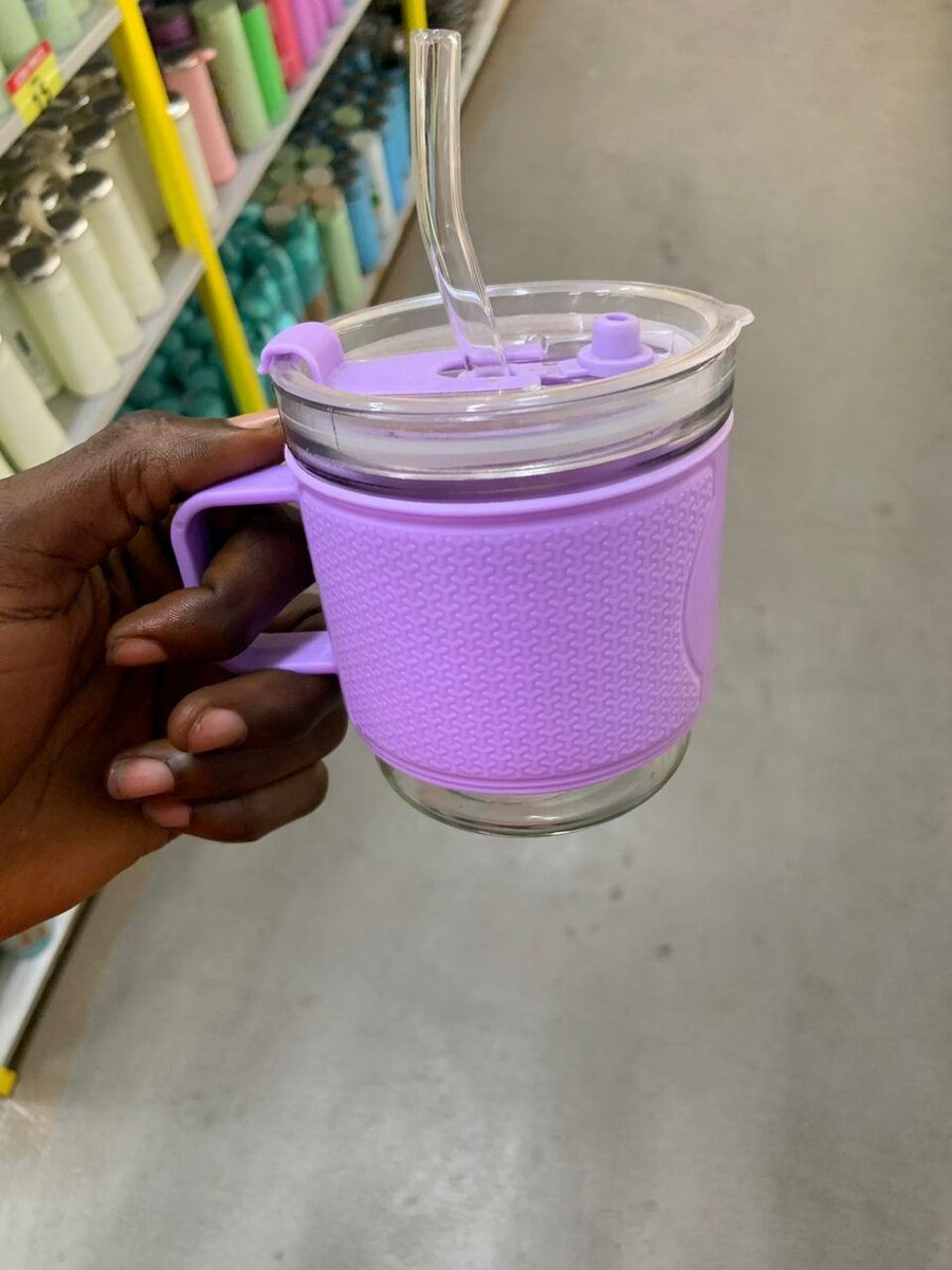 Fashionable Vintage Thick Glass Tumbler with Plastic Straw Hole Lid