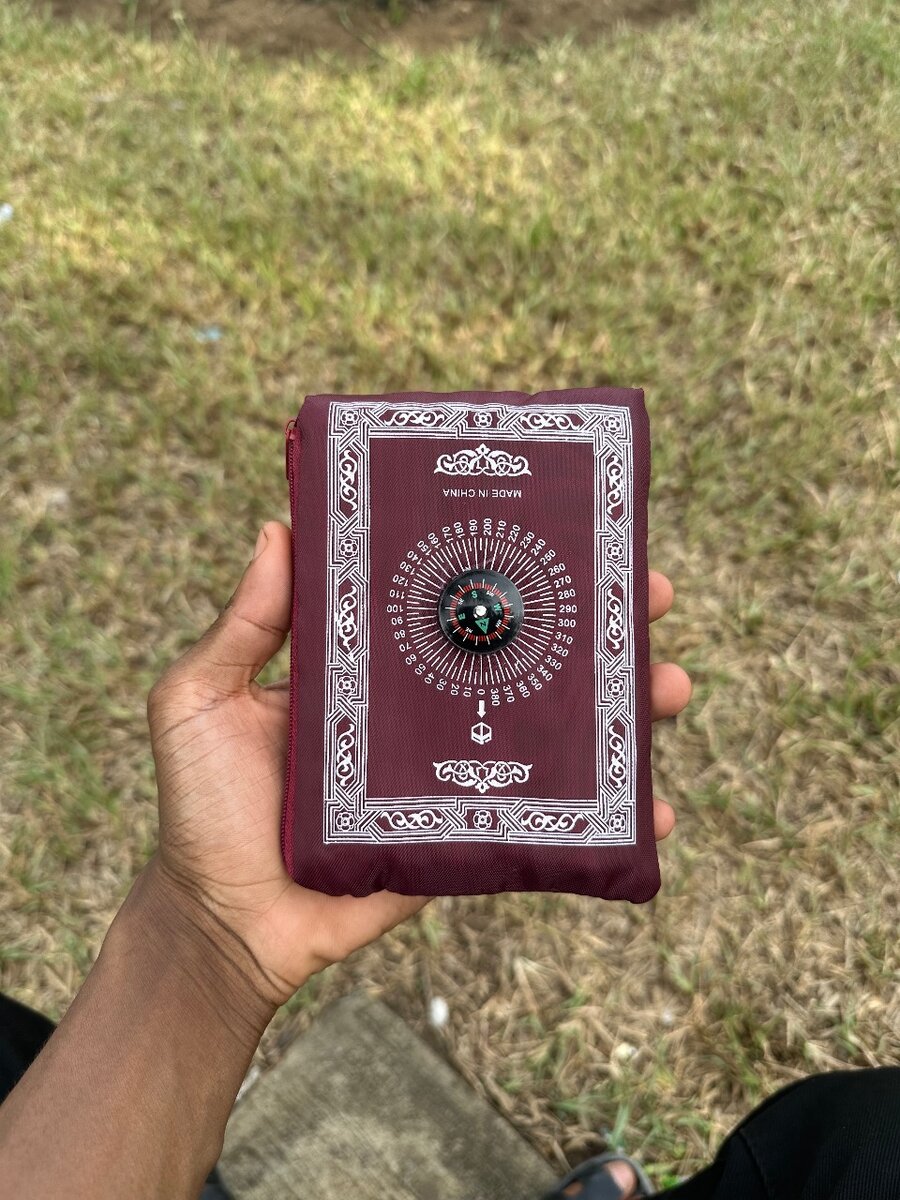 Mini Tapis de prière équipé dune boussole indiquant la direction de la Mecque Disponible en bleu , vert , rouge et noir