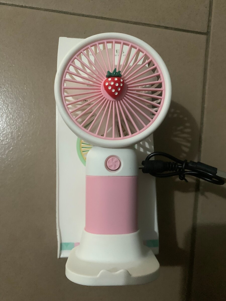 Ce mini ventilateur portable avec motif fraise est idéal pour un rafraîchissement personnel. Compact et léger, il se connecte via USB, parfait pour la maison, le bureau ou en déplacement. Design mignon et moderne.