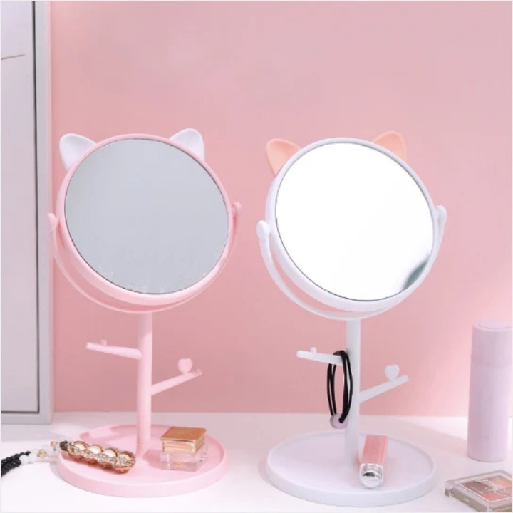 Ajoutez une touche adorable à votre espace avec ce miroir de maquillage aux oreilles de chat. Avec un design rotatif et un support pratique, il est idéal pour toutes vos retouches beauté. Parfait pour les chambres à coucher ou les salles de bain!
