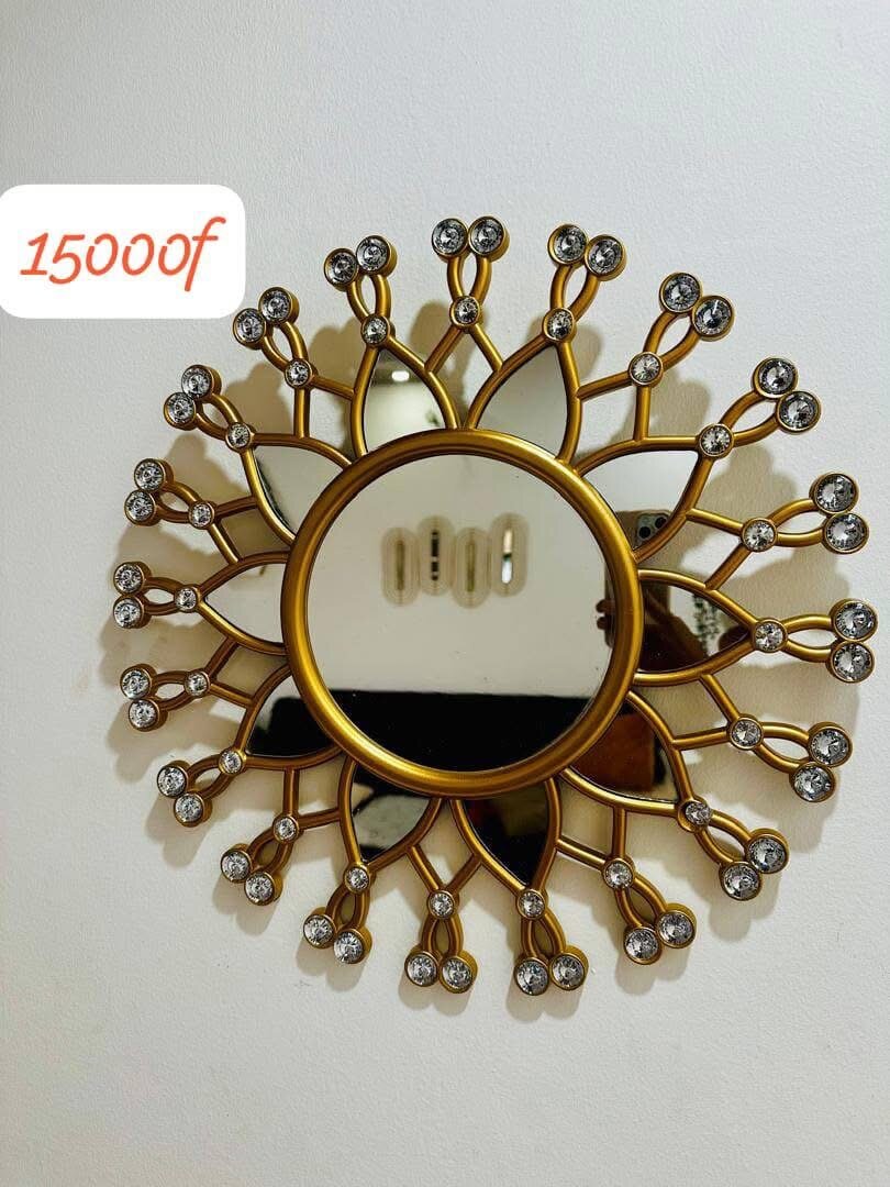 Ajoutez une touche d'élégance avec ce miroir mural doré au design unique. Parfait pour le salon ou la chambre, il crée une ambiance chic tout en agrandissant visuellement l'espace. Facile à installer et à entretenir, c'est un choix idéal pour un intérieur moderne.