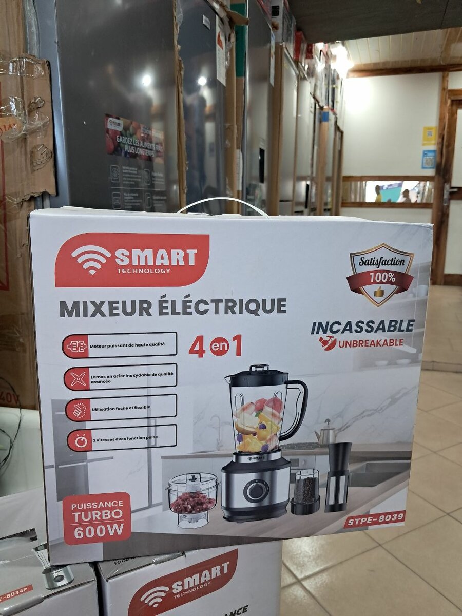 Libérez votre créativité culinaire avec le mixeur électrique 4 en 1 de SMART Technology. Puissant et incassable, idéal pour jus, smoothies et plus. Turbo 600W.