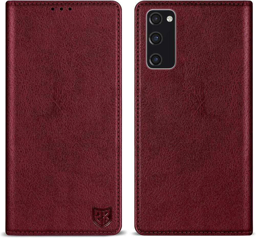 Wallet Case for Samsung Galaxy Note 20, Luxury Genuine Leather Folio Flip Cases Cover with Magnetic Buckle Card Slots, Khaki