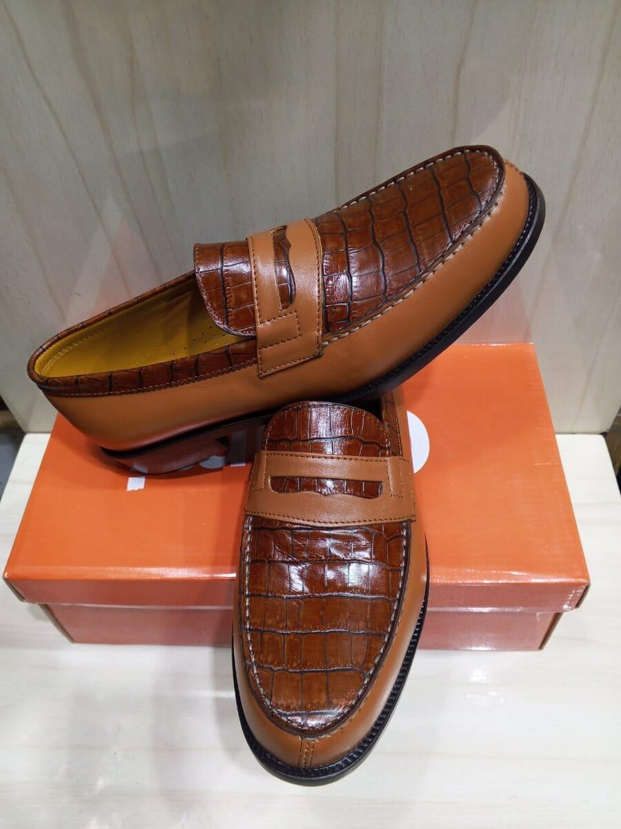 Découvrez ces mocassins en cuir marron avec motif crocodile, parfaits pour un look élégant et sophistiqué. Conçus pour un confort optimal, ils sont idéaux pour les occasions formelles ou le quotidien. Leur design allie style et praticité, faisant d'eux le choix parfait pour l'homme moderne.