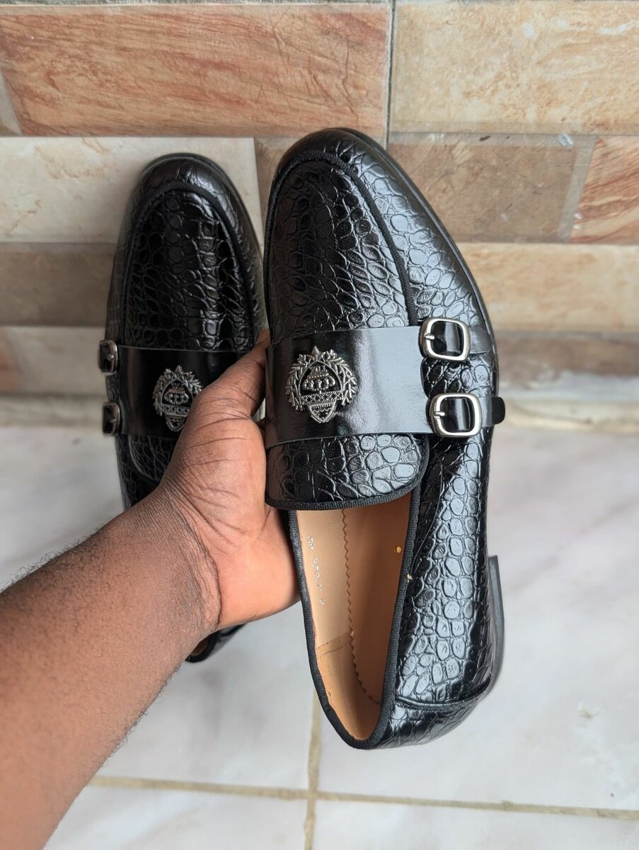 Découvrez ces mocassins en cuir noir à motif crocodile, parfaits pour un look raffiné et moderne. Doux et confortables, ils sont idéals pour le bureau ou des occasions spéciales. Leur design avec boucle ajoute une touche chic à votre tenue.