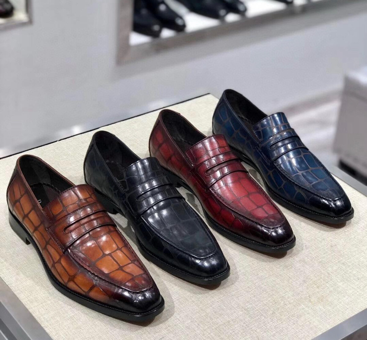 Découvrez ces élégants mocassins en cuir de style crocodile, parfaits pour une allure sophistiquée. Idéaux pour le travail ou les occasions spéciales, ces mocassins combinent style et confort avec une touche raffinée. Faites une déclaration audacieuse avec ce choix intemporel!