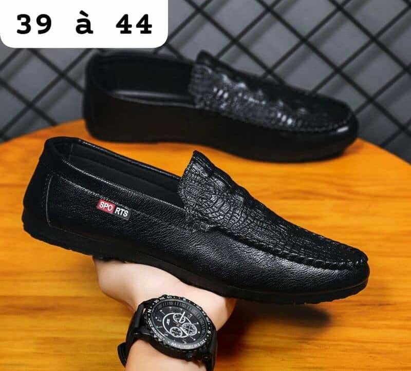 Découvrez le confort et l'élégance avec ces mocassins en cuir noir pour homme. Parfaits pour un usage quotidien ou des occasions spéciales, ces chaussures allient style et confort. Idéales pour des tailles de 39 à 44, elles sont un incontournable pour votre garde-robe.
