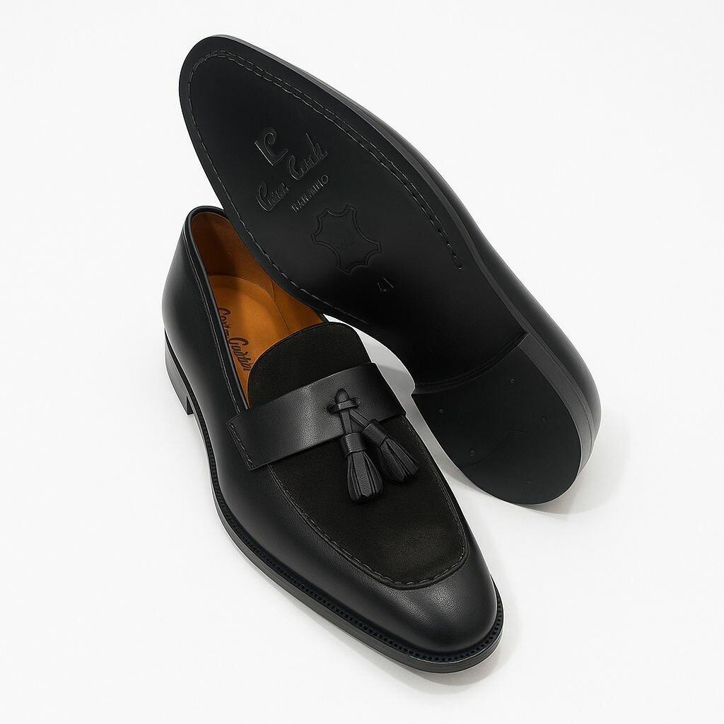 Ces mocassins en cuir noir combinent élégance et confort. Idéals pour des occasions formelles ou une tenue de bureau raffinée, ils complètent parfaitement votre garde-robe. Conception élégante avec détails de pompons pour un style sophistiqué. Fabriqués avec un cuir de haute qualité pour une durabilité exceptionnelle. Parfaits pour l'homme moderne recherchant confort et élégance au quotidien.
