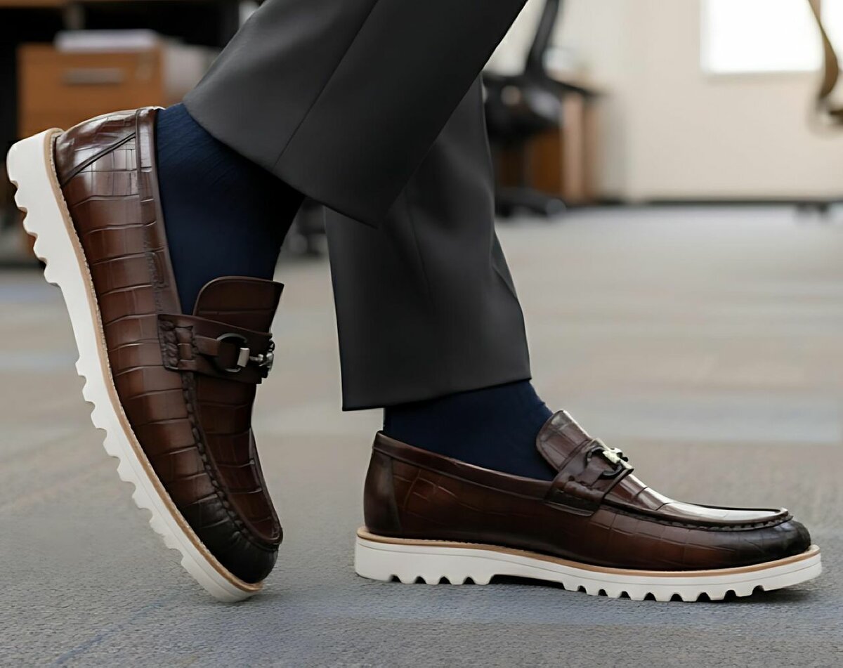Ces mocassins en cuir pour homme allient élégance et confort. Idéaux pour le bureau ou une sortie chic, ils offrent une semelle antidérapante et un design moderne. Parfaits pour un style raffiné et moderne, ces souliers sont un incontournable de votre garde-robe.