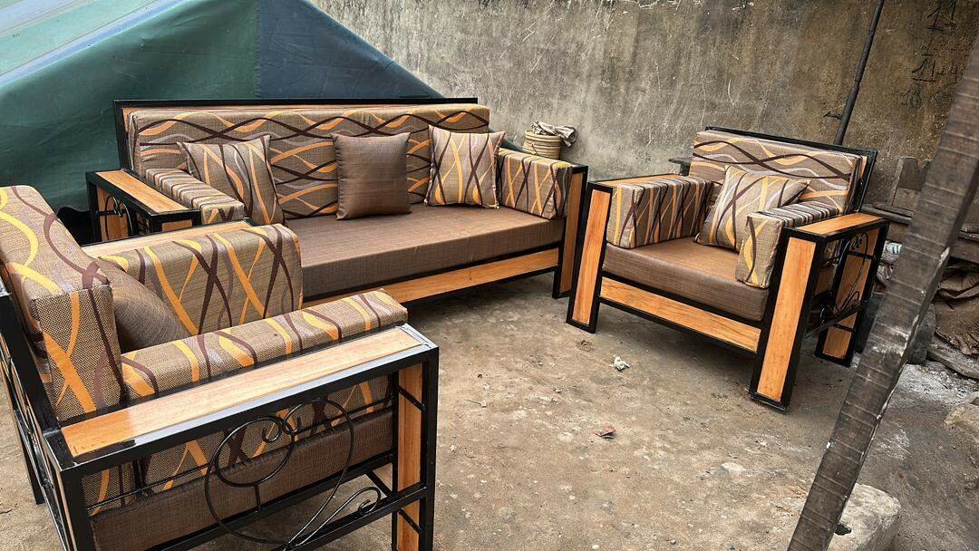 ensemble de fauteuil en fer forgé de sept places confortable résistant durable avec garantie , composé en un divan de trois places un divan de deux places deux fauteuils d'une place et la table basse