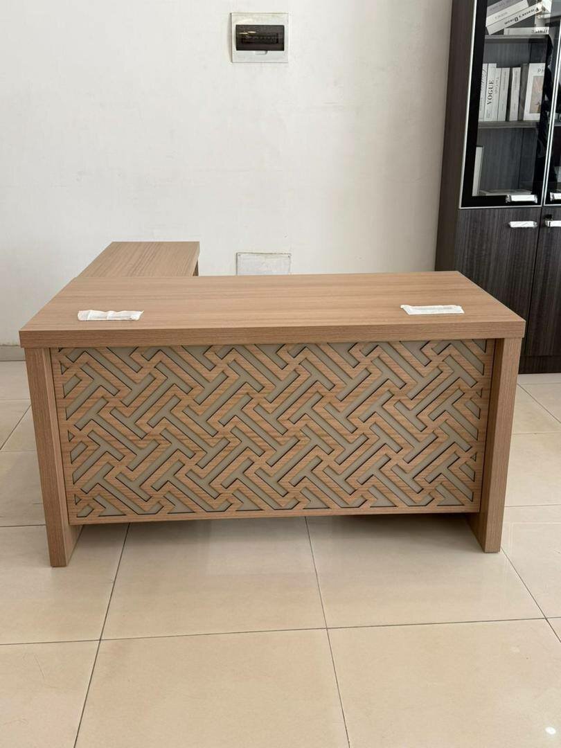 Optimize your workspace with this elegant L-shaped office desk. Featuring a distinctive front panel design and ample storage, it’s perfect for any modern office setting. Efficiently organize your essentials in the integrated drawers and shelves. Ideal for professionals seeking style and functionality.