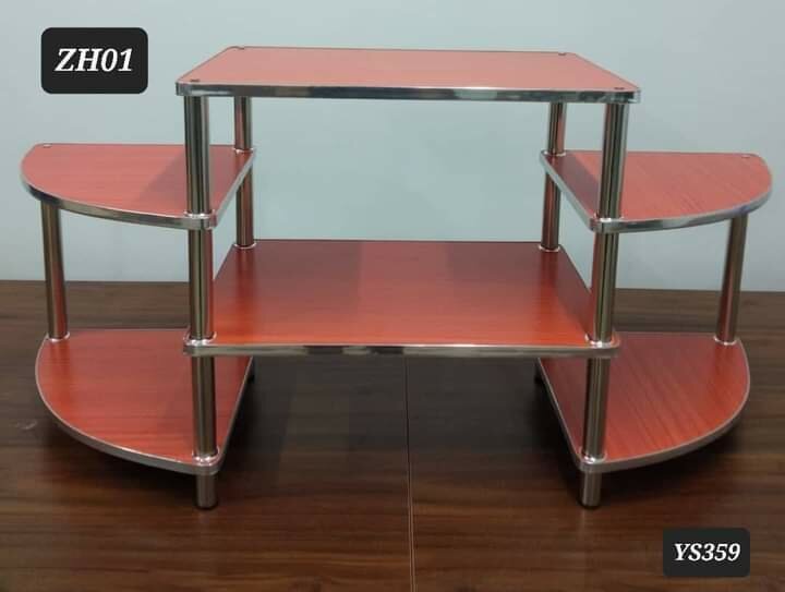 Stylish and compact TV stand with a sleek metal frame and wooden shelves. Perfect for organizing media devices or displaying decor. Ideal for modern living rooms.