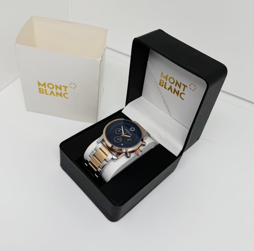Découvrez cette montre Montblanc élégante, conçue pour les hommes qui apprécient le luxe et la précision. Dotée d'un cadran noir et d'un bracelet en acier inoxydable avec accents dorés, cette montre est parfaite pour les occasions spéciales ou le quotidien.