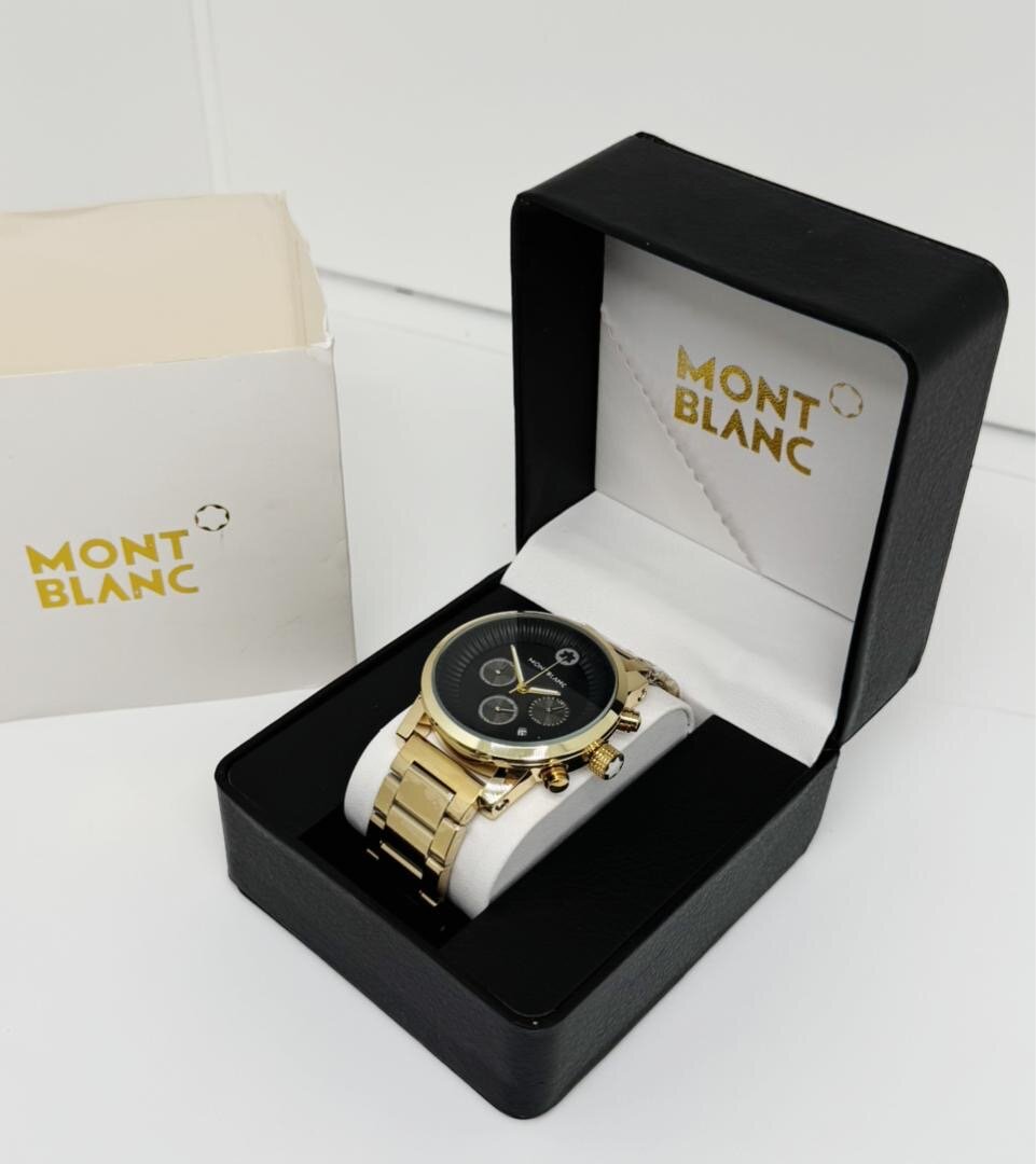 Découvrez cette montre élégante Montblanc, conçue pour les hommes qui apprécient le luxe et la précision. Dotée d'un cadran noir et d'un bracelet métallique doré, elle incarne la sophistication.