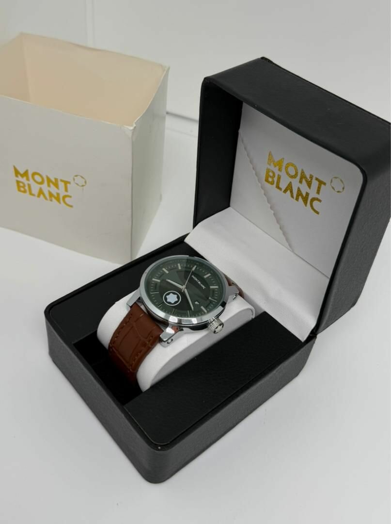 Élégante montre Montblanc pour homme avec bracelet en cuir marron et cadran vert. Idéale pour un style raffiné et sophistiqué. Parfaite pour les occasions spéciales ou le quotidien.