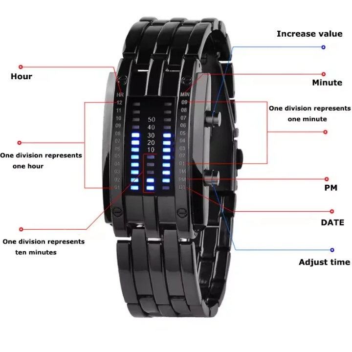 Découvrez la montre LED numérique au design futuriste, parfaite pour les hommes modernes. Avec son affichage LED unique, elle attire instantanément l'attention. Idéale pour les amateurs de gadgets high-tech, elle s'accorde aussi bien avec des tenues décontractées que professionnelles.