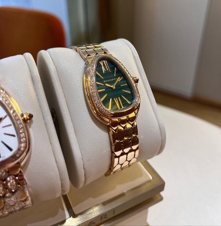 Découvrez la montre Bulgari Serpenti, un chef-d'œuvre d'élégance et de design. Ce bijou en or séduit par son bracelet en écailles de serpent et son cadran subtil aux chiffres romains. Un choix parfait pour celles qui apprécient le luxe et le style intemporel. Idéale pour des occasions spéciales et un usage quotidien glamour.