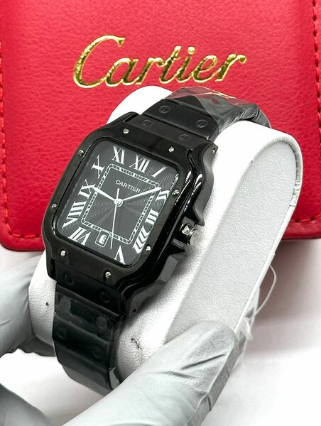 Découvrez la montre Cartier Santos dorée, symbole de luxe et d'élégance. Avec son cadran noir et son bracelet doré, elle est idéale pour un style raffiné. Parfaite pour les occasions spéciales ou un usage quotidien distingué. Une icône intemporelle du design horloger.