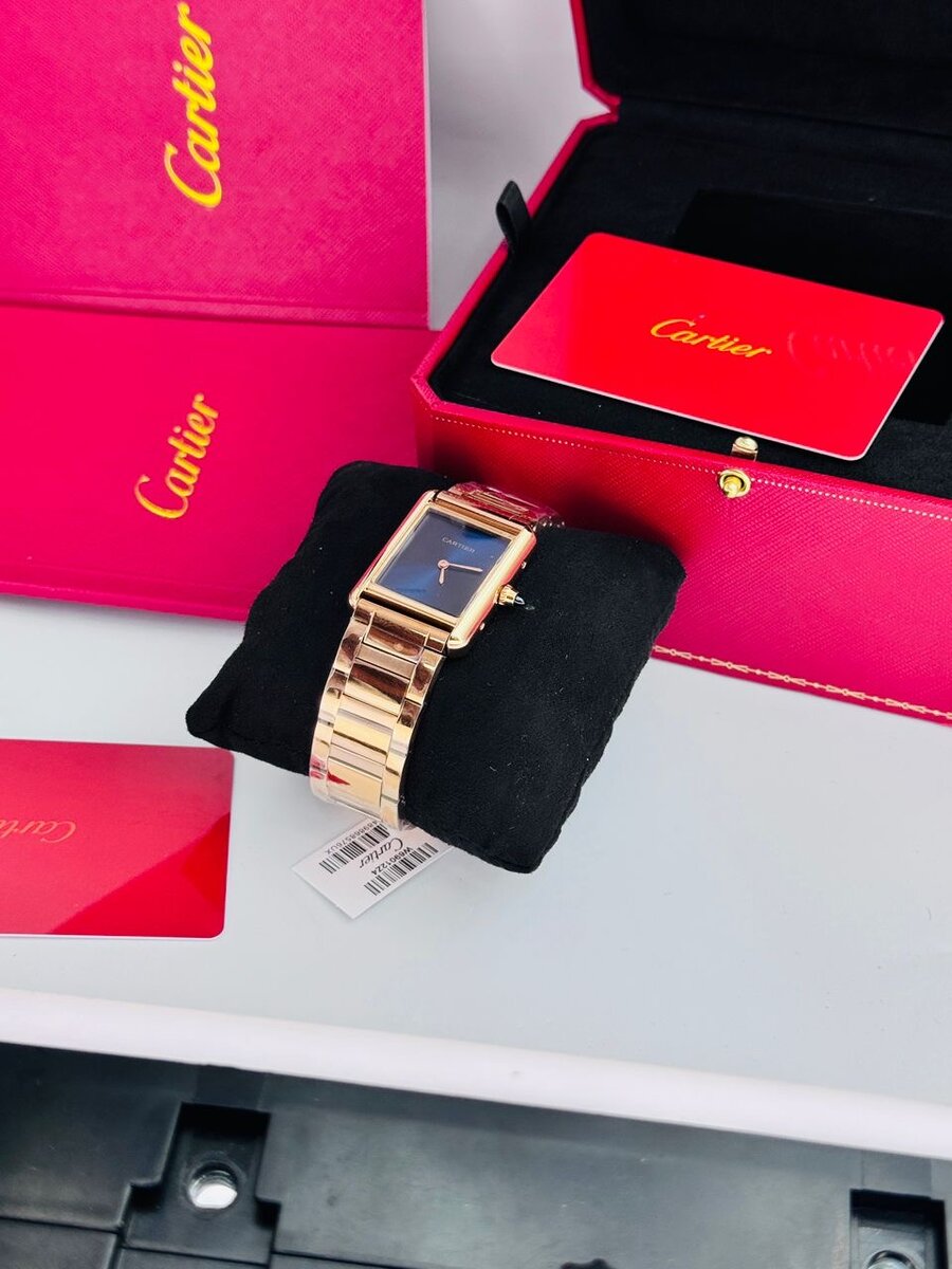 Découvrez la montre Cartier Tank, un symbole d'élégance et de sophistication. Conçue pour les hommes et les femmes qui apprécient le luxe, cette montre arbore un design intemporel avec un cadran noir et un bracelet en acier ou en cuir. Chaque montre est livrée avec une boîte et des documents d'authentification.