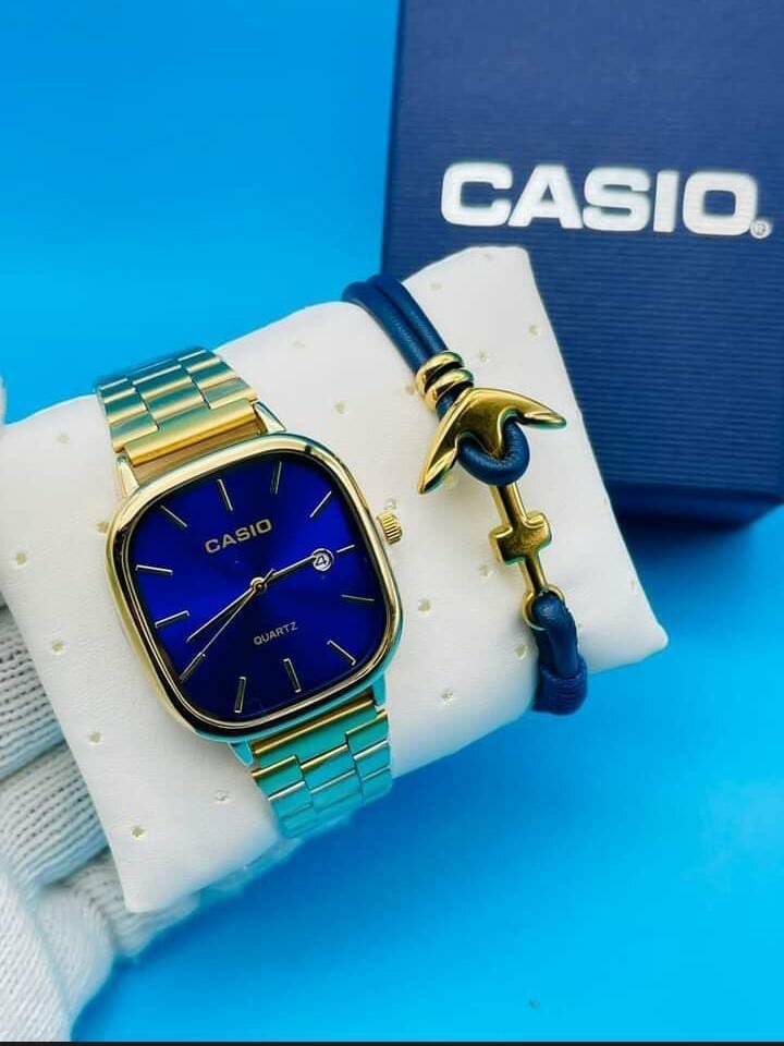 Découvrez l'élégance intemporelle de cette montre Casio en bleu et doré, idéale pour une allure sophistiquée au quotidien. Parfaite pour des occasions formelles et décontractées, elle s'accompagne d'un bracelet tendance. Style et précision assurés.