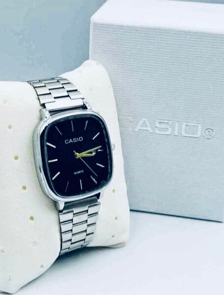 Élégante montre Casio dorée pour homme, étanche 50M, bracelet métallique chic et durable. Parfaite pour toutes les occasions.