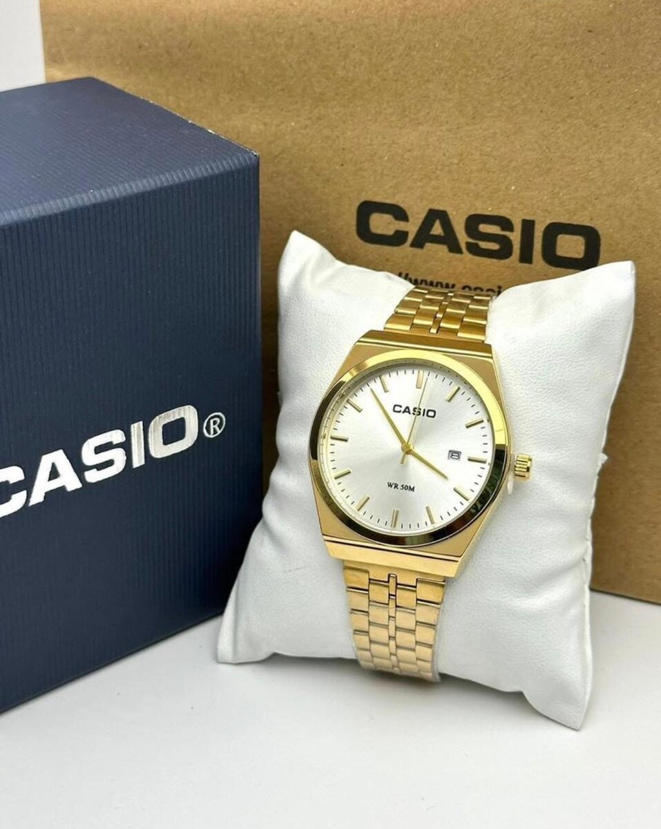 Découvrez la montre Casio en or, alliant style et fonctionnalité. Conçue pour les hommes modernes, cette montre arbore un design épuré avec un bracelet robuste. Parfaite pour les occasions spéciales ou le quotidien.