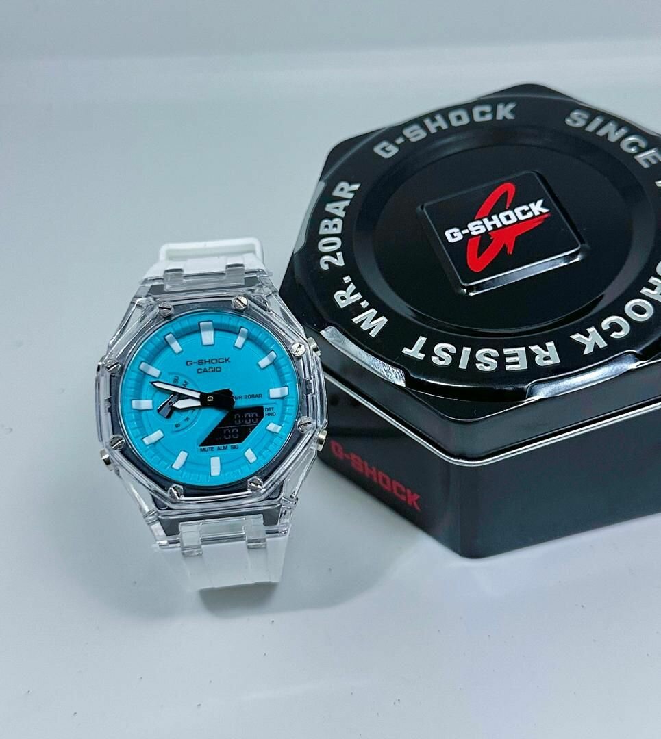 Découvrez la montre Casio G-Shock avec boîtier transparent et cadran bleu vibrant. Résistante à 20 bars, elle allie style et durabilité. Un choix parfait pour l'aventure et un usage quotidien.