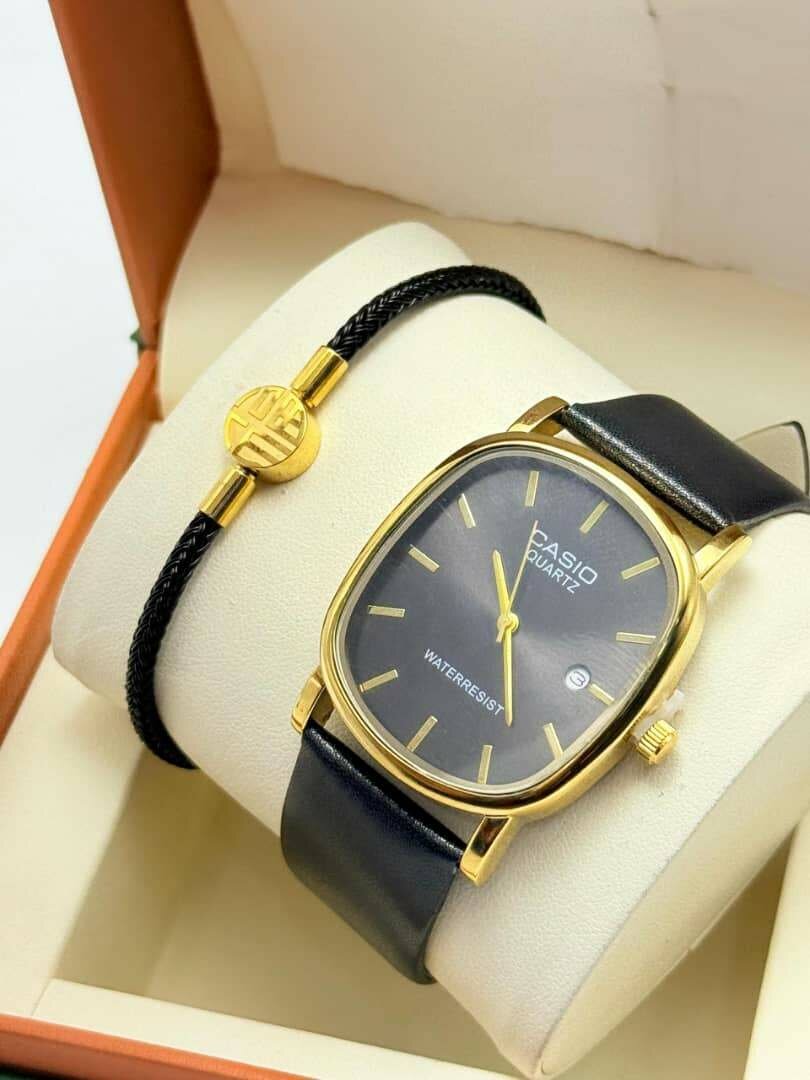 Élégante montre Casio Quartz avec bracelet en cuir. Design intemporel avec fonction étanche, parfait pour toutes les occasions. Idéale pour un look sophistiqué et moderne.