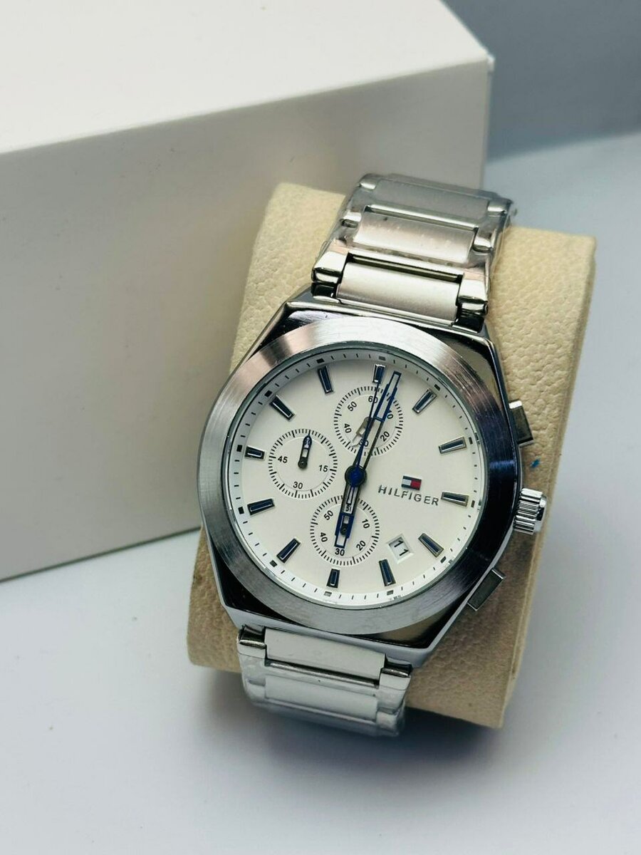 Cette montre chronographe raffinée est l'accessoire parfait pour toute tenue. Elle offre un design intemporel avec un bracelet en acier inoxydable durable. Son cadran clair et ses sous-cadrans ajoutent une fonctionnalité pratique, idéale pour l'homme moderne. La qualité supérieure garantit une fiabilité exceptionnelle, faisant de cette montre un choix idéal pour toutes les occasions.