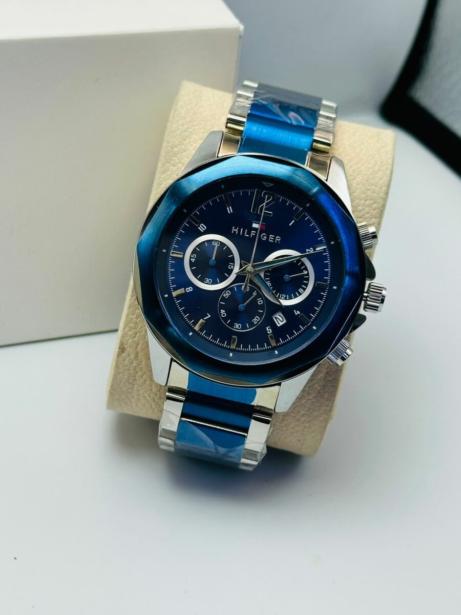 Découvrez l'élégance moderne de cette montre chronographe pour homme. Dotée d'un boîtier robuste en acier inoxydable et d'un bracelet bleu étincelant, elle combine style et fonctionnalité. Parfaite pour rehausser votre look au quotidien ou pour des occasions spéciales. Résistante et sophistiquée, cette montre est un choix incontournable pour les amateurs de mode.