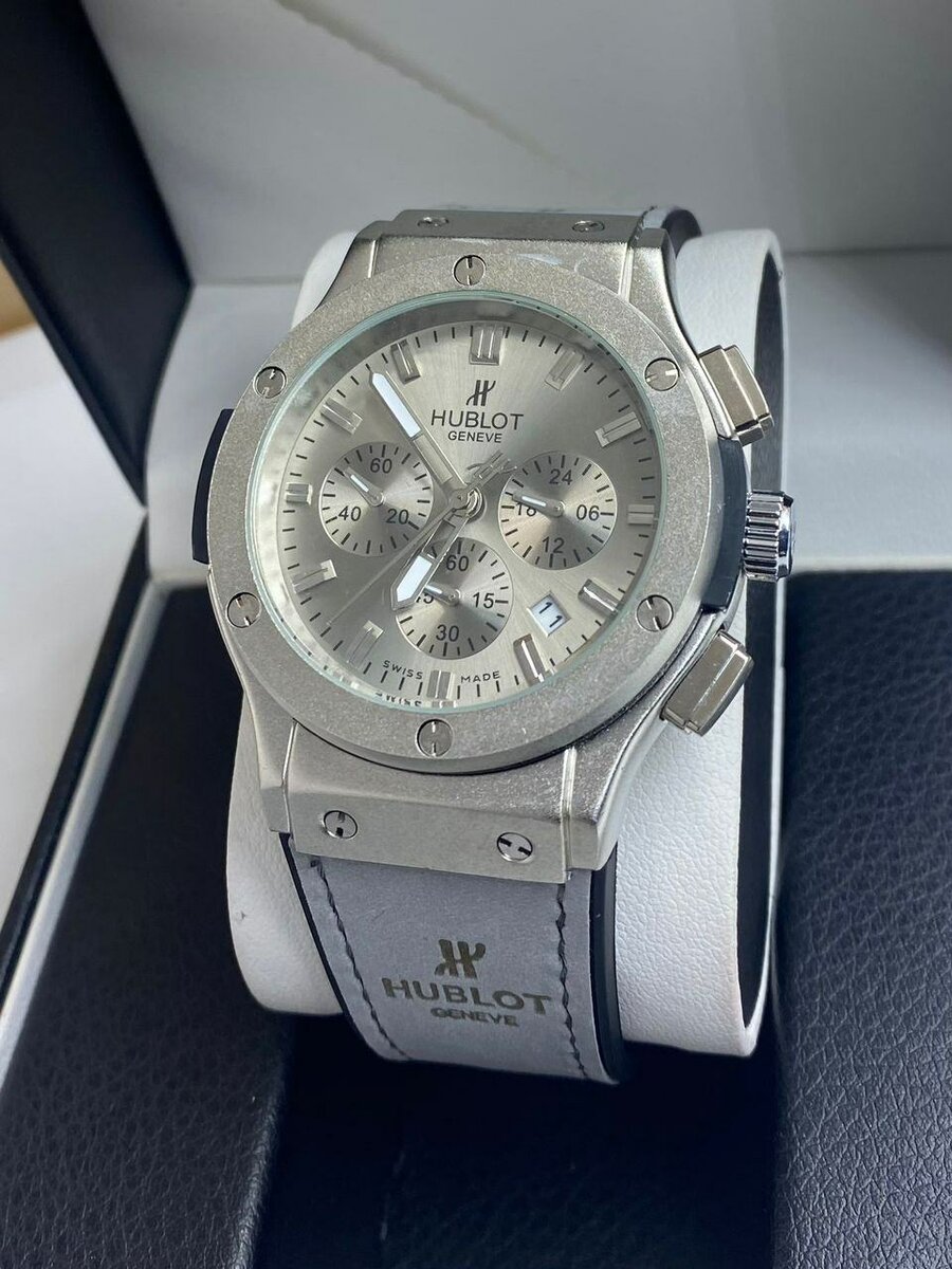 Découvrez l'élégance intemporelle de cette montre chronographe Hublot en argent. Avec son design sophistiqué et son bracelet robuste, c'est le choix parfait pour les amateurs de style et de précision. Parfait pour le bureau ou une soirée chic.