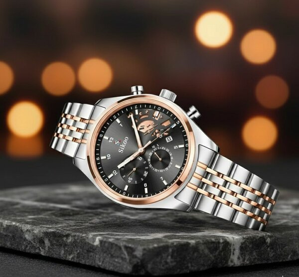 Découvrez cette élégante montre chronographe, parfaite pour les amateurs de style et de précision. Avec son cadran vert distinctif et son bracelet bicolore, elle offre un look raffiné. Idéale pour les événements formels ou une utilisation quotidienne, cette montre assure une lecture précise du temps grâce à ses multiples fonctions chronographiques.