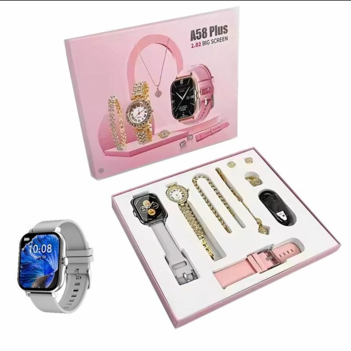 2 montres 1 bracelet 1 paires de boucle doreilles 1 chaîne Tout ceci est le composant du carton