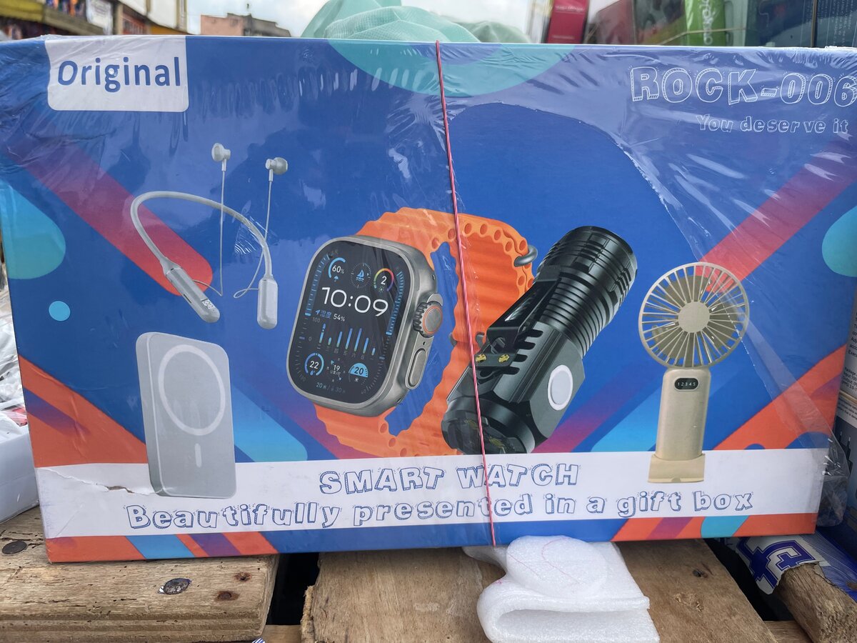 Découvrez la montre connectée ultime, idéale pour le sport et la vie quotidienne. Inclus: écouteurs, lampe de poche, ventilateur et support de charge. Un coffret cadeau parfait!