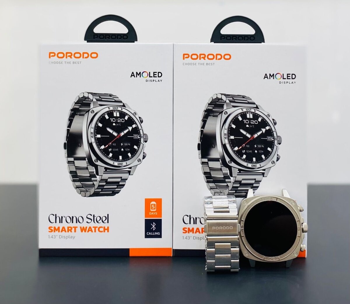 Découvrez la Montre Connectée Porodo Chrono avec écran AMOLED 1.43”, idéale pour les amateurs de technologie. Profitez de fonctionnalités avancées comme la compatibilité Bluetooth 5.2, jusqu'à 5 jours d'autonomie et une étanchéité IP68. Parfaite pour les utilisateurs iOS et Android, elle offre un suivi de santé complet et des notifications d'appel. Élégante et fonctionnelle, c'est le choix parfait pour votre quotidien actif.