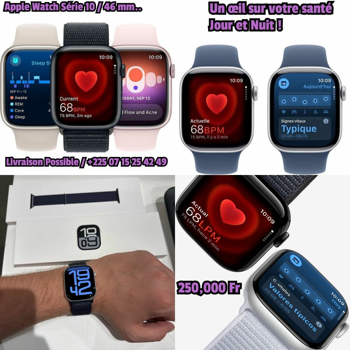 Surveillez votre santé jour et nuit avec la montre connectée Série 10. Fonctionnalités avancées de suivi du sommeil et de la fréquence cardiaque. Parfaite pour un style de vie actif et connecté. Disponible en plusieurs couleurs.