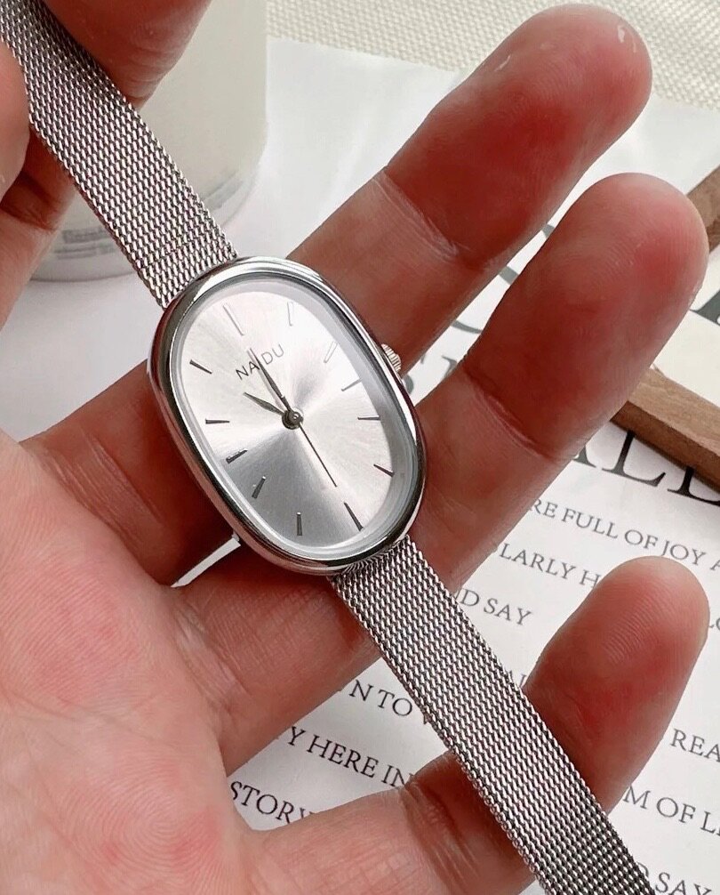 Cette montre au cadran ovale argenté séduit par son design minimaliste et raffiné. Son boîtier en acier inoxydable brillant et son bracelet en maille milanaise offrent confort et durabilité tout en ajoutant une touche sophistiquée à votre style. Avec ses lignes épurées et son cadran lumineux, cette montre est idéale pour compléter vos tenues, qu'elles soient décontractées ou habillées. Un accessoire intemporel pour une élégance au quotidien.