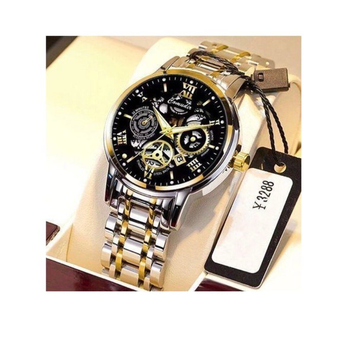 Découvrez la montre de luxe homme Comudn, parfaite pour les amateurs de style sophistiqué. Avec son bracelet en acier inoxydable et son cadran élégant, elle combine fonctionnalité et élégance. Idéale pour les occasions spéciales ou un usage quotidien. Faites une déclaration audacieuse avec ses détails en or et son design moderne.