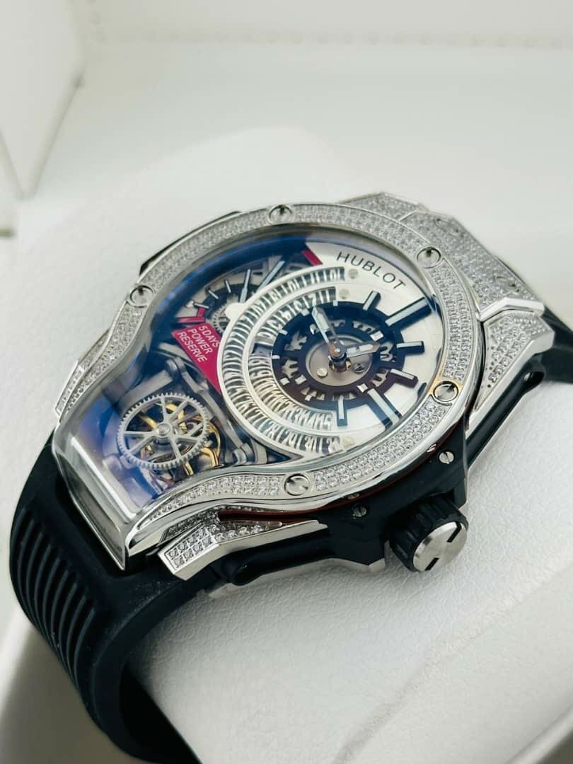 Découvrez l'élégance à votre poignet avec cette montre de luxe Hublot. Conçue avec un boîtier orné de diamants et un bracelet en silicone, elle allie style et confort. Son design innovant et mécanisme sophistiqué en font un choix parfait pour les amateurs de haute horlogerie. Parfaite pour toutes les occasions, elle ajoutera une touche de prestige à chaque tenue.