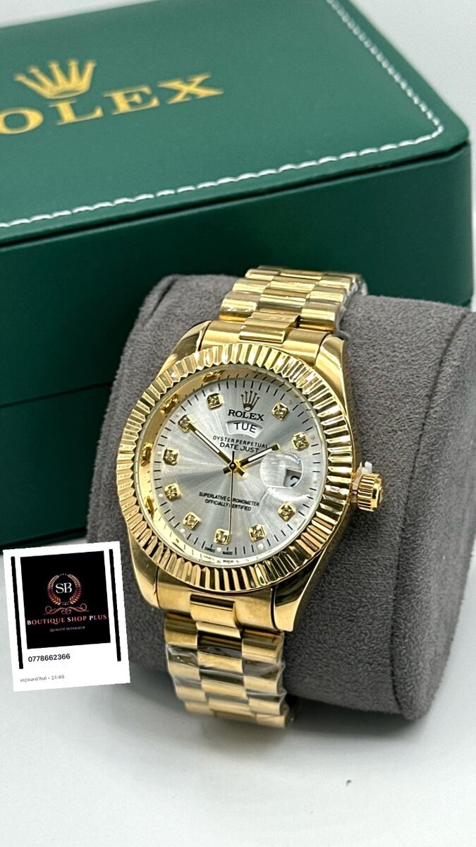 Découvrez l'élégance intemporelle de cette montre de luxe en or. Parfaitement conçue pour compléter toute tenue, elle est dotée d'un bracelet en or de qualité supérieure et d'un cadran sophistiqué disponible en plusieurs couleurs. Idéale pour les occasions spéciales ou pour un usage quotidien chic. Ne manquez pas l'opportunité de posséder un symbole de prestige et de style intemporel.