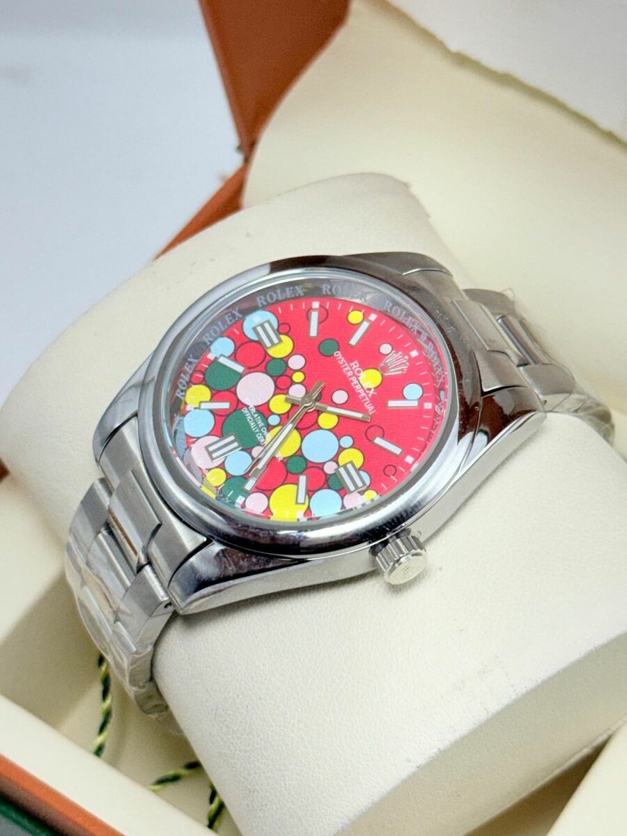 Optez pour cette montre unique avec un cadran artistique coloré. Son bracelet en acier inoxydable assure durabilité et style. Idéale pour ceux qui cherchent une pièce distincte qui attire le regard.