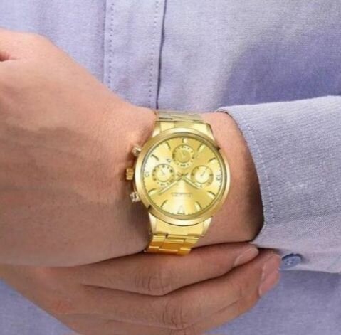 Découvrez notre montre chronographe dorée, alliant sophistication et fonctionnalité. Idéale pour les occasions spéciales ou un look quotidien raffiné. Bracelet ajustable et cadran précis pour un confort optimal.