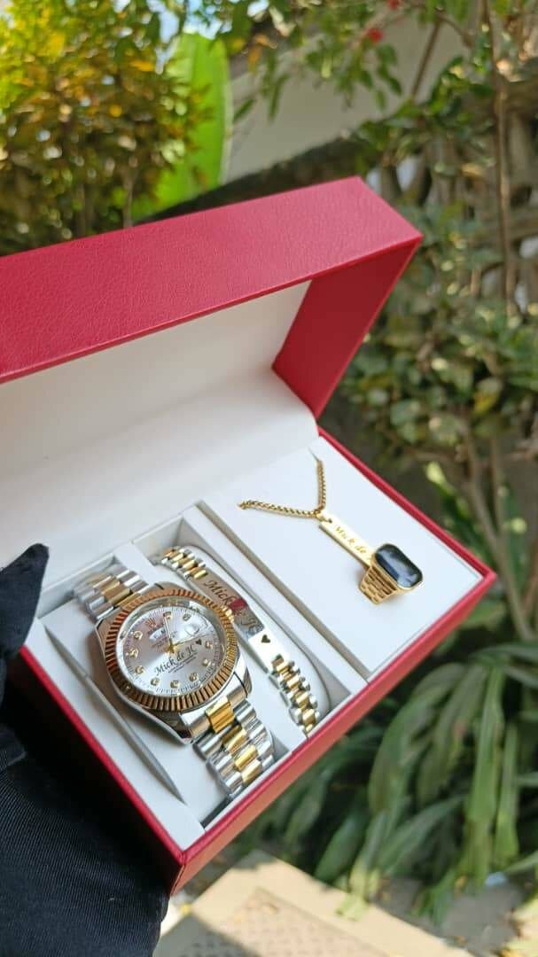 Découvrez cette montre sophistiquée avec son bracelet en acier inoxydable bicolore. Idéale pour les occasions spéciales, elle ajoutera une touche de luxe à votre poignet. Resplendissante et durable, c'est un cadeau parfait pour un être cher ou pour vous-même. Livrée dans un coffret élégant avec une chaîne assortie.