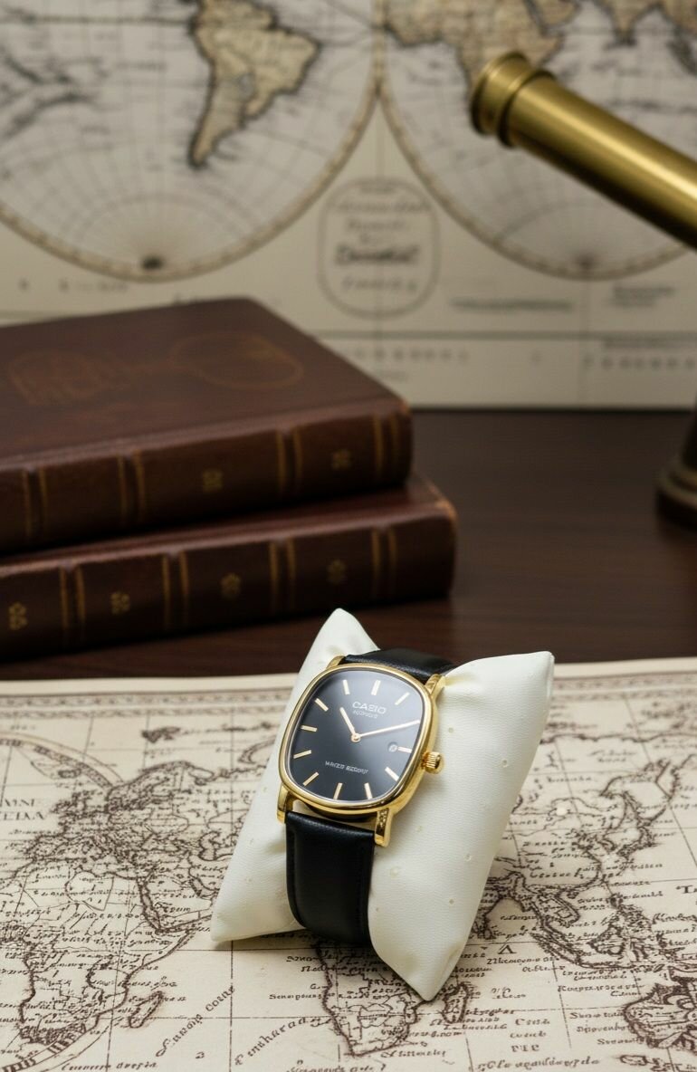Découvrez cette montre élégante avec un bracelet en cuir noir et un cadran doré sophistiqué. Parfaite pour toutes les occasions, elle ajoute une touche de luxe à votre look quotidien. Un choix idéal pour les amateurs de mode classique et intemporelle. Offrez-vous le raffinement ultime avec cette pièce d'horlogerie incontournable.
