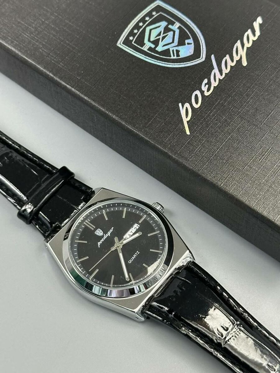 Découvrez l'élégance intemporelle de la montre Poedagar. Avec son bracelet en cuir noir et sa finition argentée, elle est parfaite pour toute occasion. Parfaite pour les professionnels recherchant un accessoire de style. Résistante et précise, elle allie fonctionnalité et design.