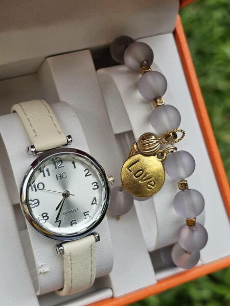 Élevez votre style avec cet ensemble montre et bracelet. La montre dorée avec son cadran rose et les strass étincelants apporte une touche de glamour. Complété par un bracelet en perles rouges avec un charm "Love" doré. Parfait pour les occasions spéciales.