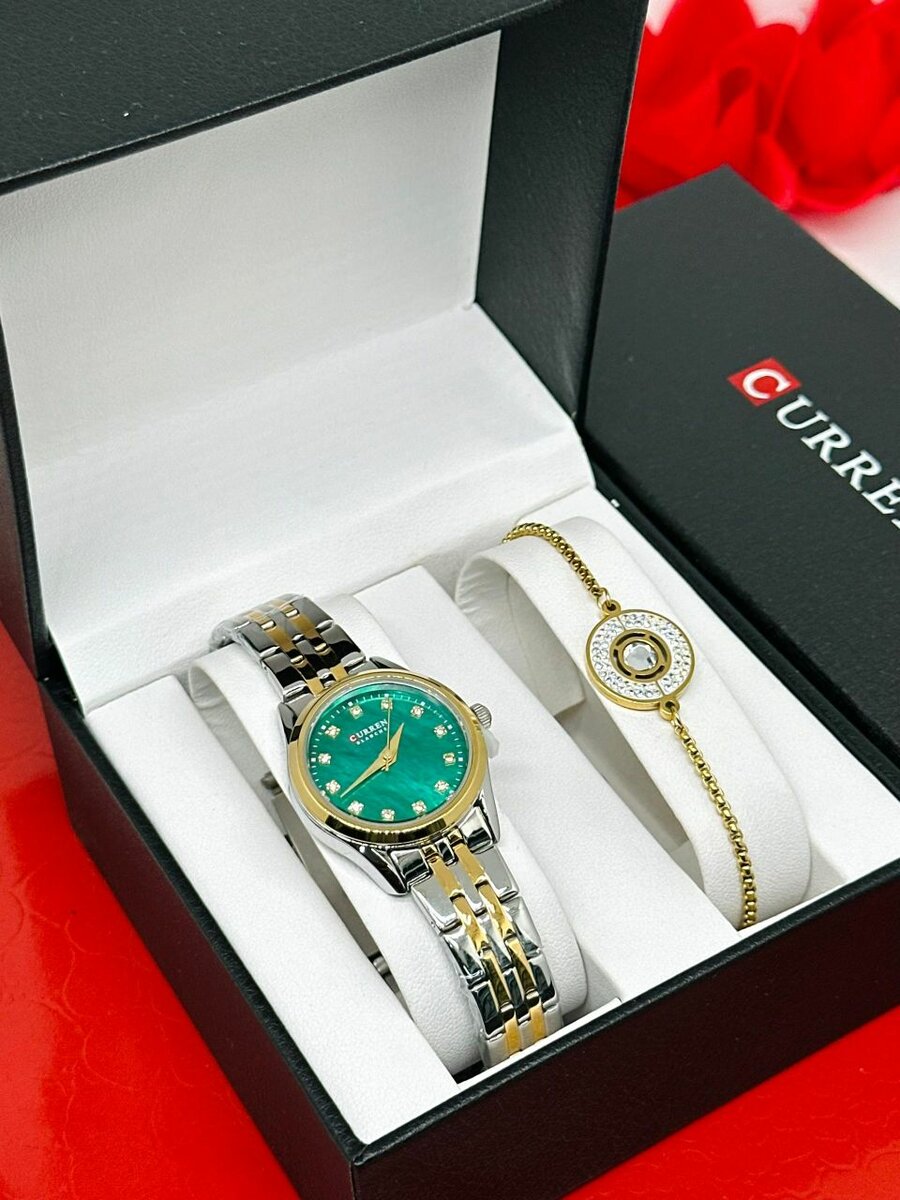 Découvrez notre ensemble montre et bracelet, parfait pour rehausser votre style. La montre présente un design sophistiqué à cadran vert avec bracelet bicolore, idéale pour toutes les occasions. Parfait comme cadeau ou accessoire quotidien, cet ensemble est le choix idéal pour ceux qui apprécient le raffinement. Ne manquez pas cette opportunité de vous démarquer avec élégance.