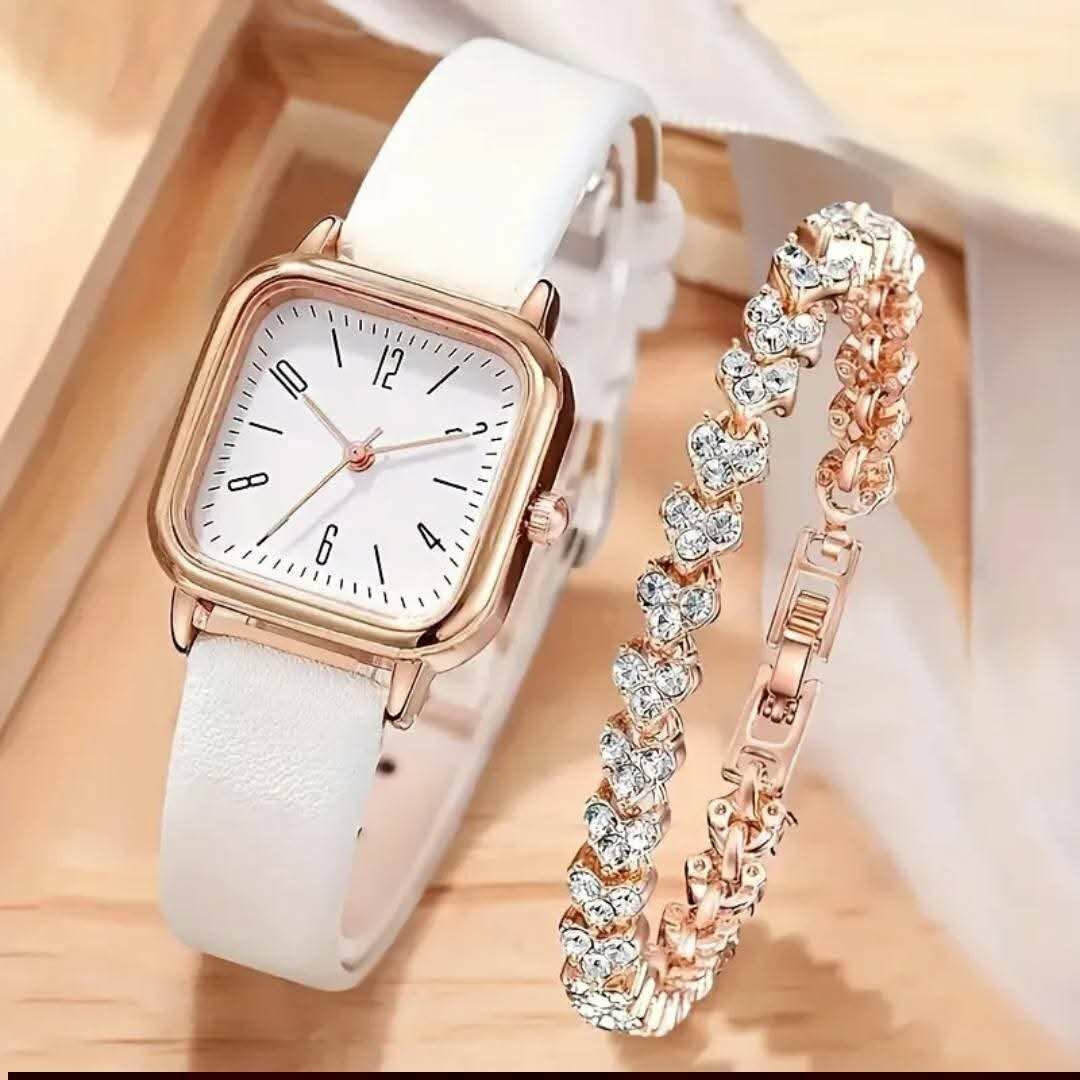 Montre en similicuir et bracelet en acier et en cristal disponible pour embellir votre poignet.actuellent nous sommes en promotion 50% de réduction Ça vient dans son coffret.